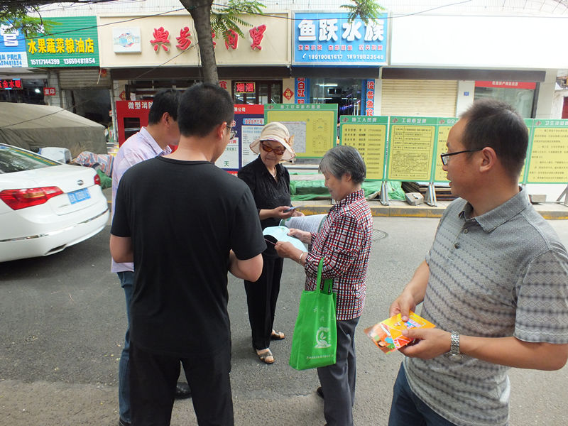 职工向过往行人发放安全手册及彩页
